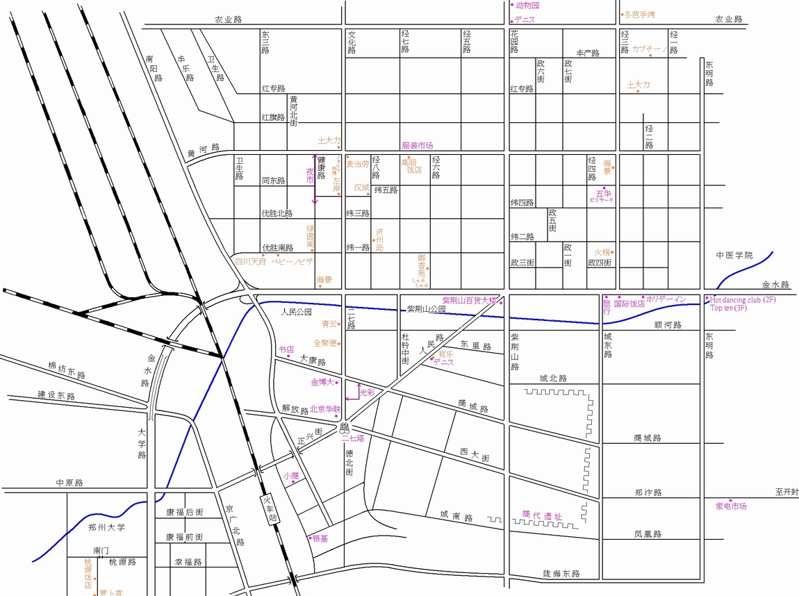 梅泽和叶是在郑州大学的日本留学生,来郑州之前在日本一家银行工作,在一次Party上认识以后老横也曾动过住美国房子娶日本老婆的念头,可惜未遂——人家已经回日本去了。前几天在MSN上碰到她,发给我她做的给后来的留学生用的郑州生活地图:虽然有些地方不是完全准确,但已经是很清晰了——由此可见我国地理分布、城市规划已然被日本人尽数悉知,也更能说明中国的铁路坚决不能让日本人来修的道理。