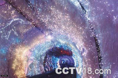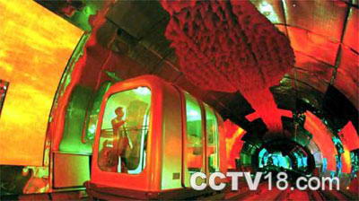 首先经过的是“时光隧道区”。隧道壁上破裂的铝板、探索器撞击地面的巨响,表明我们钻入地层,进入科幻空间。在“漩涡区”,光波飞速倒退,光纤闪亮,化作一个绚丽的漩涡。随后见到,洞壁上模拟岩石实景,辅以迷幻的灯景,探索器正在穿透岩石层,这是“穿梭区”。 进入接近江底的“岩浆喷射区”,各处是耀眼的灯光,表现出岩浆沸腾喷涌的场景。这儿色彩迷离,气氛宁静平和,仿佛如诗似画的梦境世界。 随着探索器上升,重穿地层,冲入深海。过了“穿梭区”,在“漩涡区”游人可以感受跟随探索器冲出大海,升入蓝天。在最后一个新的“时光区”,游人仿佛乘坐探索器在流星飞逝的宇宙空间畅游。外滩观光隧道如一道彩虹,将浦西浦东相衔接,就像一条充满魅力的纽带,轻松挑起浦江两岸的美景,成为上海旅游景观中一道亮丽的风景线。 |