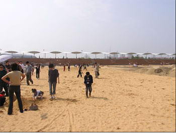 金山海滨浴场位于美丽的杭州湾畔,沙滩平缓,沙质细软,底基结实。