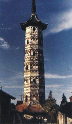 圆应塔又名西林塔、崇恩塔,在松江区松江镇(今中山西路的西塔弄内),南宋咸淳年间(1265--1274年)所建。明洪武二十年(1387年)重建,该名“园应塔”。正统九年(1444年),迁建该塔于佛殿后。塔为砖木结构,呈八角形,七层,高46.50米,为上海市古塔之冠。原为楼阁式,每层均有腰檐、平座、栏杆,1965年时因其年久失修,逐拆去。现仅存围廊和砖身。塔内登高之梯为石级,藏于砖身内,各层四面设壶门,相互转换。底层外加围廊,砖身每面3.05米,往上逐层收缩。有的壁砖上有“任勉之夫妇捐献”等字样。任勉之为明洪武至正统年间人,曾任福建参政、徽州知府等职,可知砖身系明代(1368—1436年)之物。