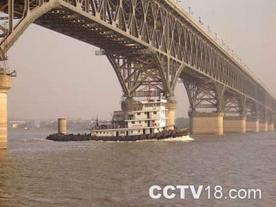 南京长江大桥位于南京市西北面长江上,连通市区与浦口区,是一座我国自己设计建造的双层双线公路、铁路两用桥,1968年12月29日竣工。 上层的公路桥长4589米,车行道宽15米,可容4辆大型汽车并行,两侧还各有2米多宽的人行道;下层的铁路桥长6772米,宽14米,铺有双轨,两列火车可同时对开。其中江面上的正桥长1577米,其余为引桥,公路引桥采用富有中国特色的双孔双曲拱桥形式。公路正桥两边的栏杆上嵌着200幅铸铁浮雕,人行道旁还有150对白玉兰花形的路灯,南北两端各有两座高70米的桥头堡,堡内有电梯可通铁路桥、公路桥及桥头 堡上的了望台。堡前还各有一座高10余米的工农兵雕塑。南堡下是一个风景秀丽的公园。 南京长江大桥共有9个桥墩,最高的桥墩从基础到顶部高85米,底面积约400平方米,比一个篮球场还大。正桥的桥孔跨度达160米,桥下可行万吨巨轮。整座大桥如彩虹凌空江上,十分壮观。尤其是晚上,桥栏杆上的1048盏泛光灯齐放,桥墩上的540盏金属卤素灯把江面照得如同白昼,加上公路桥上的150对玉兰花灯齐明,桥头堡和大型雕塑上的228盏钠灯使大桥像一串夜明珠横跨江上。 有位哲人说,“桥是凝固的历史,它记录了民族的精神。”秦人公元前蒲津桥,隋人的赵州桥,南宋泉州的万安桥显出中国古代文明“俯视六合”那份辉煌与自 信。而清代那种囿于情韵、小巧琦丽的桥却成了帝王公侯后园独享的玩物,虽风光依旧,却从一个侧面反映出“中国桥文明”走入了一个“死胡同”。而中国桥梁的辉煌时代却是共和国50年,这笔“浓墨重彩”就绘于滔滔的长江上。 长虹接地通南北,远水浮天贯古今。6300公里的长江发源于青藏高原各拉丹东雪山的沱沱河,流经11个省市。多少年,多少代,中国人梦想在长江建桥,1957年10月武汉长江大桥建成圆了国人第一个梦想。到现在,宜宾以下的长江上空已建有宜宾、泸州、白沙陀、南纪门、涪陵、万县、西陵峡、枝城、武汉、黄石、九江、铜陵、南京、扬中和江阴等17座大型桥梁,囊括了拱桥、钢桁架桥、斜拉桥、悬索桥等各种桥型,成为反映中国桥梁建设各阶段水平的庞大“博物馆”。两代架桥人在这座“博物馆”里用自己的勤劳和智慧一次又一次地向极限发出挑战。 60年代,完全由中国人自力更生建造的南京长江大桥,曾以“最长的公铁两用桥”被载入《吉尼斯世界记录大全》。