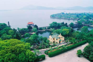 蠡园,地处风光秀美的蠡湖之滨,是国家重点名胜区“太湖”的主要景点之一。它占地123亩,其中水域面积约五分之二,以水景见长。 民国初年,青祁村人虞循真在湖畔建青祁八景,号称“山明水秀之区”。1927年至1936年,同村人王禹卿父子在虞的帮助下,利用原有基础,建蠡园;1930年王的亲戚陈梅芳在其西侧再建“渔庄”,又名“赛蠡园”。建国后,于1952年扩建蠡园长廊,与渔庄相连;1980年前后又拓建“层波叠影”新区;仍以蠡园命名以上全部景点。 该园三面环水,远眺翠嶂连绵,近闻长浪拍岸;南堤春晓,桃红柳绿;枕水长廊,步移景换;假山耸翠,曲折盘旋;亭台楼阁,层波叠影。当代大文豪郭沫若咏有佳句:“欲识蠡园趣,崖头问少年”。而且蠡园假山就水而叠,因水而活,尽显山水交融之“假山真水”的无限情趣。 1995年国家邮电部发行的《太湖·蠡湖烟绿》和1996年朝鲜发行的《太湖》邮票,都将蠡园作为其主景。邮票被誉称“国家名片”,上述两枚邮票的发行,更使蠡园遐迩闻名。 |