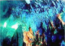 从海屋大场左侧进袖管洞,转过三层楼,就到了海王厅。海王厅像一个非常高大海底龙宫,两边是对称的石阶,大厅中央悬挂着一对垂岩构成的宫灯,富丽堂皇。穹顶上云雾缭绕,奇岩怪石,五光十色。两株古老的石松,傲然挺拔,宛如龙宫庭柱。石松下,一头雄狮张大嘴巴,仰首翘尾。在海王厅地平中央,由溶岩滴水积聚而成的水池中,可见洞口与蓝天相接的倒影,形成了绝妙的“洞中蓝天”。海王厅左侧是一个进出口并排的小洞,洞内有清澈见底的泉水,称水洞。在洞底可以“坐井观天”。出口则见云雾中一座天桥横空而架。攀上弯曲陡峭的云梯,有蛤蟆嘴、大蘑菇、鲤鱼戏水,万福来朝等景物。 继而又到地道洞,洞内高起伏,时而弯腰低头,时而侧身前进。中心岩顶有一幅象棋盘,故又叫棋盘洞。洞中复有洞中洞。洞中洞在海王厅右侧。盘上旋下,左曲右弯,仿佛九曲回肠,又名盘肠洞。过了狭窄的羊肠小道,抬头远看,一缕自然光反射进洞内,叫“一线曙光”。 迎着曙光环绕而上,到有两个并排进口的旱鼻洞;旱鼻洞盘旋而上到七窍洞。七窍洞7个洞口通向一个中心。出了七窍洞,有三路云梯穿过大璎珞门通往朝天洞口―――盂口。盂口的磐石上镌刻着元代杨维桢所题“海内奇观”四个遒劲的大字。回顾洞内,钟乳叠嶂,云雾缭绕,深邃的洞底隐约可见。 走出朝天洞口,即登上了盂峰山顶。极目远眺,只见群山起伏,绵延不绝。竹海、茶园、陶都丁山把古城宜兴装点得分外壮丽。向东浩渺的太湖与天际相接,天波潋滟,鱼帆点点。这便是张公洞的最后一景――琼崖望湖。 |