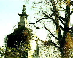 万佛石塔,原名禅师塔,座落在吴县市镇湖西华装饰的西泾村(西京村)。它面对太湖,隔湖与光福窑上山相望。坚固耐用太湖水患多,而塔是佛的象征,佛是威力无比的化身,为了消灾镇邪,南宋绍兴年间(公元1131—1162年)始建该塔,作为镇湖之物。在明朝成化年间,高僧昕乚将塔进行了洗刷整修。至今已经历了692年的风风雨雨了。 塔由石灰石石块砌成,作单层造。塔呈四方形,高8.5米,都用青石砌成。塔体外方内圆,造型简洁,比例适度,坚固朴实。它既不同于汉族传统的楼阁式宝塔,也不同于元代盛行的由印度传入我国的喇嘛塔(瓶型塔),可谓自成一体,别具一格。塔原座落在江南名刹秀峰附近,座北朝南,通高11.2米,分台基、塔身、塔刹三大部分。塔朝南辟一近似火焰的塔门,门高2.1米,阔0.72米,正面额上刻有“古塔重兴”四个大字,东西两面均刻有“阿弥陀佛”四字。塔门两侧镌有楹联一副,上联是“造塔功德愿众生”,下联为“发菩提心同成佛道”。 塔室似圆形井壁,上小下宽。底部直径2.14米,顶部直径1.65米,壁高3.75米,下部设有0.74米高的须弥座。须弥座正中束腰处有修塔题记:“澄觉精舍记”字样,为考证建造年代提供了线索,左侧刻有“吴门石匠吴德谦昆仲造”,右侧刻“院道者志园同共斡缘”,上枭部饰有“惹草如意头饰”。须弥座上环筑十层武康石块,并刻满一排排浮雕小佛像。佛像高4.5厘米,宽3.5厘米,仅鸡蛋大小,一个个衣冠清晰,五官可辨,结跏趺坐在莲座上。这些小佛像每排平均有180尊,共60排,计10800尊,“万佛宝塔”名称由此而来。 正对塔门有一尊高约30厘米,宽20厘米的佛像,它虽不算在,但在这里却是群龙之首,此像为佛祖释迦牟尼,以示万佛端坐恭听佛祖在讲经说法。塔刹是一个石雕葫芦状花瓶,宝珠结顶,下设覆莲、相轮和四角起翘的佛龛,佛龛四周的壸门各镌刻一尊坐佛,安放在由八层宽窄不等的石块所组成的刹台上。据说,元代大书法家、湖州刺史赵孟頫见了这些佛像后赞不绝口,欣然挥笔题写“万佛宝塔”四字。 |
