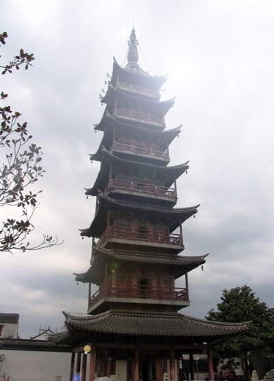 延福教寺,位于昆山市千灯镇,创建于梁天监二年(公元503年),距今已有1500多年历史。当初千灯人王束舍宅,僧从义开山建寺。五代开平二年(公元908年)重修寺院,赐名为“延福禅寺”。后晋天福二年(公元937年),敕赐“波若寺”。宋大中祥符元年(公元1008年)真宗赵恒皇帝改赐“延福教寺”。 僧从义在建寺当初,同时建浮图七级。因其位于秦柱山阳,故名其为“秦柱峰”,又称“释迦佛塔”,后人称之“秦峰塔”或“千灯塔”。该塔于宋大中祥符元年重建。寺塔屡毁屡修。1956年,千灯秦峰塔被列为江苏省文物保护单位。