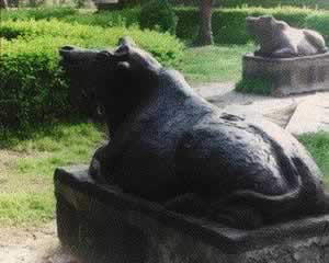 清康熙年间,洪泽湖大堤建成时,曾铸九牛二虎一只鸡用以镇水。古人以金、木、水、火、土五行相克的哲学思想,立“九牛二虎一只鸡”于大堤之上,以此镇水。如今已是虎归森林,鸟飞远去,只有憨厚的铁牛与洪泽湖朝夕相伴,可惜仅存五条(一说仅剩两条)。其中两条在蒋坝三河闸管理处,俩条在公园和高良涧进水闸,一条在淮阴高埝。铁牛系生铁铸成,除牛角均已残缺以及部分铭文锈蚀外,余则保存较为完好。铁牛身长1.70米,宽0.57米,高0.68米,有厚0.07米的一块铁板与牛身铸为一体,共重约2250公斤(一说重4000公斤)。牛身肩肋处铸有阳文楷书铭文,铭文曰:“惟金克木蛟龙藏,惟土制水龟蛇降,铸犀作镇奠淮扬,永除错垫报吾皇”。从铭文得知,铁牛是用来镇水的。据史料记载,历史上洪泽湖大堤多次溃决,仅从公元1575年--1855年280年间,就决口140余次。当时清王朝除广集民工修筑外,决定铸造铁牛,以期镇水,去除洪害。康熙四十年(公元1701年),大司马张遂宁等于端阳节午时在高良涧开始铸造,原计划9条,后材料有余,遂铸成16条,铸成后的铁牛分置在洪泽湖大堤各险工要段。 九牛二虎一只鸡的传说 人们常用“九牛二虎”来喻力大,清朝政府在加固洪泽湖大堤时,便铸造了“九牛二虎一只鸡”,放在大堤水势要冲,以祈镇水。 据说铁牛当初铸造之时,肚内本是金心银胆,夜间还常常跑到田里偷吃老百姓的庄稼,当人们出来打时,一棍打了它的双角。此后又不知道哪个贪财之徒,偷摘了铁牛的金心银胆,遂使铁牛不能行动,就失去了镇水的作用。现存的铁牛大小如真牛,均作昂首屈膝状,似哞哞欲叫,憨态可掬,横卧在厚约10厘米的联体铁座上,铸工精细,造型生动,重约2500公斤。铁牛肩胛上刻有楷书阳文:“维金克木蛟龙藏,维土制水龟蛇降,铸犀着证奠淮扬,永除错垫报吾皇。康熙辛已午日铸。” 沧海桑田,“九牛二虎一只鸡”也已鸡飞虎跑,只剩下五头铁牛零落在堤上沐风淋雨了。今天,这铁牛则成了最受人们青睐的洪泽湖一景。 |