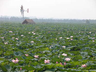 行进在前往水泗荷园的路上,一幅幅生动的画面不时地映人游人的眼帘:公路两旁的稻田里挂满了金灿灿的稻穗,圩堤边爬着又大又肥的螃蟹,湖荡里藕农们在墨绿色的荷叶下不停地淘藕。当游人踏进荷园,首先映人眼帘的是由江苏省书法家协会会员赵文澜先生书写在界碑上的遒劲有力的两个大字——“荷园”。“接天莲叶无穷碧,映日荷花别样红”。走在荷园桥上,便会使游人真正感受到自己已经与“中国荷藕之乡——宝应”亲密接触了。站在荷园岸边,放眼望去,眼前呈现出一片浩瀚的荷花荡。在耀眼的阳光下,万亩荷花荡的尽头则是碧绿—片。座落在荷花荡里的四座风车,风叶迎风转动,有着—一种执着不阿的精神,远远望去,好似四只巨大的河鸟在空中翱翔。田埂小路旁的芦苇、蒲草、睡莲等自然景观更是尽收眼底,妙不可言。 乘船行进在荷花荡中,则是另一种心境。船夫竹篙轻点河水,小船便如离弦的箭一样向前飞去。接过藕农们递来的鲜藕,洗去泥污,再送进嘴里,那脆嫩鲜活的感觉,即刻会使你忘却一切烦恼。在荷花荡里观光,最叫人开眼界的莫过于藕农们淘藕的场景了。藕农们淘藕,有三五一群的,也有十多个人在一起的。他们淘藕时就像魔术师变魔术一样,齐腰淌在水里,从水里取出——枝枝鲜亮的藕枝出来,直看得人眼花缭乱。 根据史料记载,荷藕具有许多的药用价值,清香可口,健胃消食,利便防痔,降脂降压,以及调节人体代谢等功效。为了进一步开发和扩大荷藕利用价值,水泗乡已建有全国规模较大的荷藕批发交易市场,创办了四个荷藕加工企业,生产盐渍藕、保鲜藕、水煮藕、捶藕、精制藕粉、藕粉圆、碧荷茶等,大部分产品远销日本、韩国,以及东南亚等国家和地区,受到国内外消费者的欢迎。荷园开放以来,吸引了众多中外游客前往光。2002年荷花盛开时节,中央电视台、上海东方电视台、江苏电视台、法国公共电视台等新闻媒体纷纷到荷园取景,拍摄专题片,并在法国、美国、加拿大等欧美国家播放,产生了国际影响。如今,荷园已被江苏省立项,作为自然生态项目加快建设。这里还将增加多处观光景点,如建曲桥、荷亭,没垂钓中心、藕产品展示馆,让游客看得舒心,尝得开心,玩得尽兴。 |