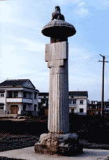 萧绩墓东石柱 萧绩墓西石柱 石兽后面的一对石柱,亦称华表,系由三部分组成,柱首罩一圆盖,成仰复莲花座,是梁代盛行的装饰。座上立有一个辟邪,前肢腾跃,昂首朝天,张口似作吼叫,形态逼真。这种莲花装饰,显然与当时印度佛教在中国盛行有关。柱身中部,圆柱形,柱周围雕成爪棱形条纹,计24条。柱身的上部嵌有一块小方石神道碑额,额上文字为阴刻,笔划清晰。碑文是“梁故侍中中军将军开府仪同三司南康简王之神道”,分三行,每行七字。两柱的碑文相同,均由外向内起读,取其对称。字体端正娴雅,是典型的南朝书法。石柱正中雕饰一兽面纹。上是一圈绳纹,下接一圈为双龙戏珠的纹饰图案,形象非常生动。下部柱座上刻有两条蜥蜴。整个石柱形制别致,颇具江南典雅优美的特色。 萧绩墓石兽体形虽然庞大,但在雕刻时加衬了羽翅,今有不觉其体态大而重,而有振翼欲飞之感。柱身下面又刻有中国固有吉祥之兽的柱基,这表示要保持了祖国的民族艺术。又在刻有爪棱形态文的石柱上,盖着印度式的莲花圆盖,这又表示了在保护民族艺术的前提下,还吸收外来文化艺术,加以融合贯通,从而创造出更美、更新的艺术作品,这是我国古代劳动人民非凡的智慧结晶。 |