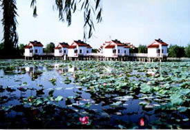 扬中国土公园是国内第一家以土地立意命名的公园,是集休闲、娱乐、江鲜品尝、养殖观赏和国土教育为一体的综合性旅游景点。 扬中国土公园位于长江下游第二大岛、全国生态示范市、水上花园城市——江苏扬中市东北部。它背依长江,南迎 山。北与扬州、泰州、南通隔江相望,南和镇江、南京、常州带水相连。南有大桥,北有轮渡,距铁路和高速公路仅半小时路程,出入十分便利。 公园设计完全体现水城特色和惜土意识。园中所有景点围绕一座巨大曲折的池塘次第展开。大池之形乃模拟中国地图,其四周和中间分布有国土碑亭、碑林、百米长廊、假山、荷香居、清风亭、怡然亭、动物园、跑马场、双屋亭、吊脚楼等。大型展览馆内,展示有史以来各种农耕工具、农作器械,让人重温远古时期的农业文明;而池内放养的数万尾长江鱼种,供游客观赏、垂钓,更让人感受回归自然的恬静。 |