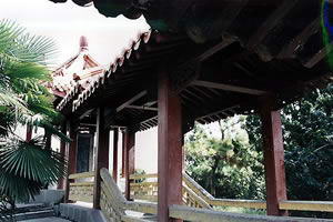 城北公园在1986年扩建后,增加了几处具有深重政治和纪念意义的建筑物,使公园风光尤浓。在人工湖上高耸横堤东部,建有淮海中学纪念碑亭。此亭为纪念抗日战争和解放战争期间,我淮海区民主政权为培养革命干部而创办的淮海中学而建立的。主要由当年淮海中学的学子捐资,于1989年建成。碑亭通过长廊与硫璃瓦展厅相连。原淮海区行政公署主任李一氓题写的“淮海中学纪念碑”巨型碑刻立于亭中。展厅内的墙壁上嵌有原淮海区领导干部金明、杨纯乃至各界名人的题字刻石。厅中陈列花木展品。 在横堤的北面空地上,竖立着“沭宿海抗日中学纪念塔”,此塔主要是由抗战期间,沭宿海地区为培养革命干部而创建的沭宿海中学分散在各地的学子们筹款建成的。纪念塔为钢筋混凝土框架结构。底层四个大门,塔底为花岗岩石栏板。底座平台高1.937米,象征:1937年全面抗战开始。以上为七层塔身,象征“七·七”事变,总高度为27.5米,精美壮观,气势恢宏。塔内外墙壁上有张爱萍(题写塔名)、李德生、陈士榘、金明、肖克、杨纯等当年淮海区军政界领导人和当今的名人题字刻石。99年又兴建大型娱乐景点"乐惊宫"。宫内人物形象各异,灯光映照,维妙维肖,令人叹为观止。 公园的西北面,有一个高耸的土堆,名曰土山,原是古沭城城角晾望台。1934年,土山上曾建一草亭,由时任县长的邓翔海手书“劝农亭”大字嵌于亭上,意在劝人勤于农事。“劝农亭”早已毁于兵燹,但土山尚存。现在,站在高高的土山上,极目整个公园,绿树彩花,环抱碧水,“霸王桥"、六角亭倒映入水,湖面上游舟荡漾,湖南儿童游乐场喧闹嬉戏,使游入神清气爽,怡怡而乐。 |