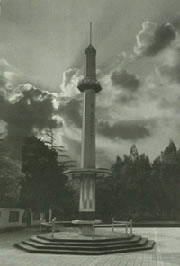 民国22年,(1933)由褚辅成、陆初觉等人发起,为纪念嘉兴参加辛亥革命的敖嘉熊、龚宝铨、王家驹、陈以义、唐纪勋、姚麟、徐象黼七位先烈,建嘉兴七烈士革命纪念塔于嘉禾第一桥西堍。塔周围曾建中山公园,面积仅数亩,建国后一度改为儿童公园。1979年在此兴建南湖饭店,塔拆除。1987年嘉兴市人民政府拨款按原样重建于人民公园内。塔高14.5米,为三级式八角形水泥实心塔,底部直径0.7米。现名辛亥革命烈士纪念塔,民革中央主席屈武题写塔名。 |