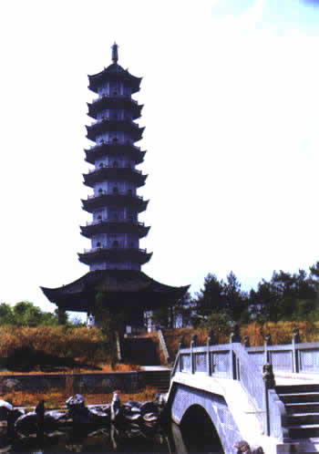 凤凰塔 龙虎塔,通称上塔,原耸立地城西前(蛇)山头村蛇山顶上,扼永康城出水口,与位居江南的凤凰塔遥相对峙,形成了“龟”、“蛇”锁江的雄伟气势。塔基占面积约150-180平米,高七层,条石基础,砖砌塔体,塔内楼梯盘桓,可直登顶层。鸟瞰丽州,山环水绕,江天一色,令人心旷神怡。塔旁配建有寺,名上塔寺,至今尚保存寺庙古建筑两幢。寺内的青龙绕柱石刻浮雕,工艺精湛,艺术价值很高。塔址东侧悬崖上原有清代永康县令吴廷康书写的“龙虎山”大字摩崖石刻 |