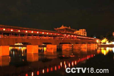 西津桥位于永康城西,横跨永康江上。这里在600多年前是个渡口。著名的“西津晚渡”就出在里。每当夕阳西下,江面波光粼粼,立在船头,远处燕子低飞,眼前鹜鸭争游,景色分外艳丽,是永城八景之一。迄清康熙五十七年(1718)始建成一座木造结构桥梁。此后屡坏屡建,最后一次修建于清嘉十二年(1807),并在桥头立了一块《西津桥志》石碑表彰。这次修建不仅已复旧貌,而且比先前更坚固更雄伟了。 西津桥设计巧妙,造型奇特。全桥13墩14孔,长70丈,宽1.5丈,高1.4丈。桥墩上有木构桥身,上建廊屋55间,桥中心3间建有双层亭阁,构造美观实用。排列成行的石墩呈弧形向下游微曲,如此从北向南看,可使人感到“一眼看不穿桥身”,颇有气势。桥顶椽、檩刷以土红,显得古色古香。梁柱密布屏列,西厢低梁相间坐凳,可供游人小憩。桥内两侧可供人们自由徘徊,周设窗棂,可供远眺。据有关古桥梁专家说,这样的古桥全国只存有五座,而永康的又最古最长。 西津桥与武义熟溪桥均为廊桥,均称为“姐妹桥”。1997年公布为省级重点文物保护单位。 |