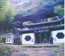 “群峰奔赴龙丘山,蜿蜒起伏多岩峦。就中最奇为三叠,兀然高耸如峨冠。”这是余绍宋咏三叠岩的诗句。三叠岩坐落在县城东南15公里处,主峰危岩兀立,石室如楼相叠三层,故名三叠岩。