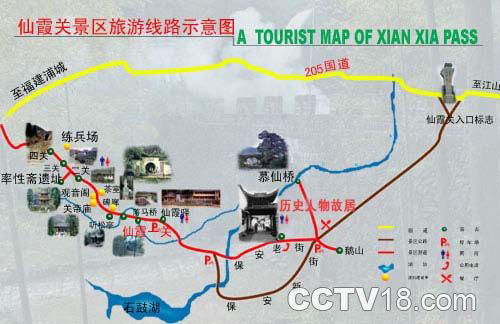 仙霞关景点导游图 仙霞关景区含仙霞古道、仙霞四关、冲天苑、历史人物故居、廿八都古镇以及浮盖堆石洞群等主要景点53处。据史载,唐末黄巢起义军进军福建时,开辟此山道。这里关雄峡险,为浙闽赣三省要冲。素有“东南锁钥”、“八闽咽喉”之称。位于茫茫仙霞古道上之仙霞关,现存关门四道,皆以块石筑砌。头关主要景点有松风亭、“东南锁钥”石碑、双宝树、浣霞池、天雨庵(即关帝庙遗址)、冲天苑暨仙霞岭史料陈列馆、黄巢石像及沙孟海题刻《菊花诗》碑等。二关有甘泉、霞岭亭、率性斋遗址。三关有古碉堡遗址。四关有福口亭。仙霞岭北保安地方有戴笠故居。仙霞关1963年被列为首批省级重点文物保护单位。岭南的廿八都古镇,保存着大批古建筑群,具有丰富的建筑文化内涵,为省级历史文化名镇。 |