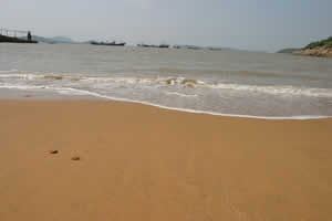 黄金沙滩位于东海之滨,背靠东凤凰山,沙滩全长300米,涨潮时沙滩有7米宽,退潮时可达20多米。沙滩沙质细腻,柔软,颜色金黄,因沙粒中夹杂有颗粒微小的石英砂岩,阳光照射时,石英砂粒反射阳光,更是金光闪闪,因故得名。 脚踩沙滩上,感觉柔软如海绵,一起一落的潮水,让人心旷神怡,沙滩呈斜面,适合沙滩游泳。沙滩背面的凤凰山上有许多临海而建的古民居,全由石头堆砌而成,极具海岛民居特色。沙滩位于干江白马岙村凤凰山下,距干江镇约6公里,距离县城22公里。可以从下栈头码头坐船进入,也可以绕凤凰山山路进入。将来计划在凤凰山坳建一隧道由东渔村直接进入白马岙村,可进入性良好。