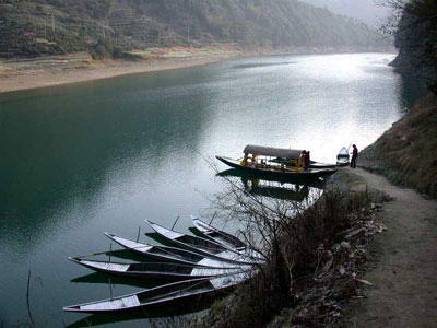 丰乐湖景区全长约15华里的水路,水色碧绿,流淌在鸟语花香的山谷中,轻舟扬帆的旅途,早春遍野的映山红、春夏中勤劳纯朴采茶女、秋日片片红叶和冬日那环绕水面的紫花带。依山傍路而建、富有农家生活气息的小村庄,水面上那满布的渔具,游客无不心旷神怡。船在水中行,两岸青山夹峙,中天白云悠悠,只觉"人在湖中游,天在水中抖,几座高峰成孤鸟,几多青山变绿洲"。你可以听到清脆的山歌,甚至亲自去采上一筐春天的清茶,还可以花上3、5元钱,去买上一笼真正的清水河虾,用船上农家酿制的美酒,好好的品上这醉虾的美味,这真正融入自然的感受,又是何等的美妙呢? |