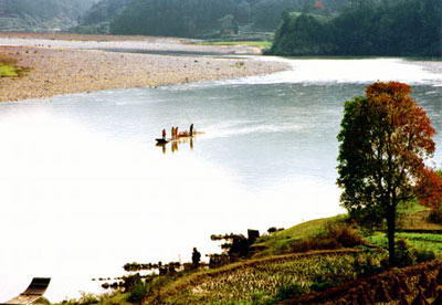 大别山龙井峡 原名龙井河,后改为龙井峡,峡谷中的所有名称均与龙相关,故以龙为主题命名了峡谷中的四个瀑布。 游客从入口处下车,步入林荫山道,漫步中时而穿插激流汹涌,时而巨石挡道,当你来到了一个称为花潭石的去处时,涤荡尘俗的水流,涌溅在泉石之间,涓涓细流盘绕在硕大的顽石上,把你的视线引向河道上的下一水景湘妃池。湘妃池看似水势丰满,隐而不发,内里激情有佳,汹涌澎湃,旁边有一忠厚的金龟,忠实地守护着她,人们戏称金龟守浴。连接着它的是一段山边小路,仅五分钟的路程,游客就来到了龙井河下游的第一个瀑布龙井瀑,人尚未走近,奔腾的水雾扑面而来,约五十米高如柱的水流从天而降,直泄瀑底的龙井潭。瀑布旁是一扇压顶而来的巨石,春季到来时,山泉铺满了石面,顺流而下,似一巨幅蝉冀薄纱。绕道瀑布落水处,就是瀑布的上游,不想走的游人可继续漫步丛林中,每隔一段,总有一瀑布在等着你,有数条水流横溢,似龙戏珠,称为神龙手瀑布,有的似远古帝王的酒樽,称为龙王樽瀑布。游人溯水拾级而上,如不想步行,可随手招一轿夫,躺在轿子上你会悠然自得地落脚在山顶的瀑布下,该瀑布高达七十米高,称为龙门跳。 大别山别水湾 游人从渡口上了木筏游船,木筏启动后静悄悄地流淌在清彻碧蓝的湖面上,水上的大别山奇峰耸立、山峦叠障,游客们在木筏上观赏湖光山色、沐浴阳光雨露、品尝风味小吃、欣赏黄梅小调、品茗霍山黄芽。游览过程中有游人捕鱼吃烧烤的活动,还有上岸游览古村寨霸王寨的活动,这里有蜿蜓曲折的山间小路,跌宕起伏的山峦,石林相间的峭壁,缠壁而过的涧泉,深不可测的峡谷,一碧万顷的湖泊。