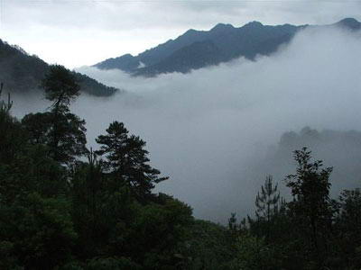 水口在五指峰左侧,距茨坪九公里。这里风光极美,尤以曲溪幽谷、碧潭峰峦和杜鹃林为胜。主要景点有水口河谷、金牛戏水、百叠泉、彩虹瀑(飞龙瀑)、锁龙潭、藏星岩、龙门等。
