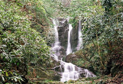 慢步仙姑坛风景区,使人心旷神怡,那三仙瀑布更是镶嵌在仙姑坛风景区的一颗璀灿的明珠.进入景区山门,踏上林荫小道,沿着潺潺溪流而上,步行三分钟,只见瀑布似三条玉带,从崖顶中间倾流而下,在峻壁峭崖上喷珠吐玉,犹如仙女挥舞银链.仰望之,象银蛇挥;细听之,拍击峭崖的轰鸣声,似仙女们在欢歌笑语,演奏出一曲曲沁人心脾的美妙乐章;如遇上晴天,上午八.九点钟左右,当晨曦透过云层,穿过山峦密林,映.射飞流直下的瀑布时,赤橙黄绿青蓝紫,宛如云霓天下娇,一幅壮丽奇妙的彩虹呈现在您的眼帘。