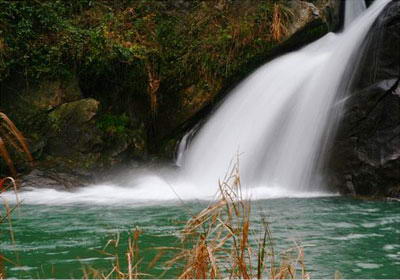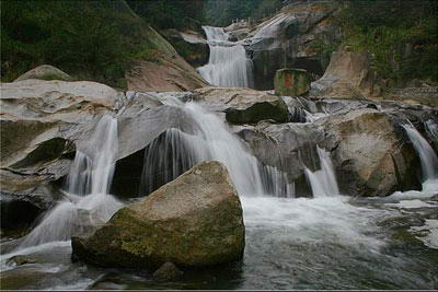 位干罗市镇南店前村境内,共有六潭六瀑,瀑布叠飞而下,或宽或窄,宽如玉带垂地,窄似碧柱顶天,声播如雷,轰鸣作响。或雨或雾,雨为水石相激而溅,雾是水珠随风而荡。潭水澄澈如镜,两岸青山倒映水中,云雾绕崖,气象万千,雨后日出时,见瀑布水雾现彩虹,甚为奇妙,令人赞不绝口。
