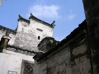 婺源江湾的江姓是西汉开国宰相萧何的后裔,唐末僖宗宰相萧遘因“朱温篡唐”蒙难,其子萧祯隐居安徽歙县篁墩“指江为姓”,后其第八世孙江敌于北宋元丰年间始迁婺源江湾。 婺源江湾的建筑布局卓具特色,一街六巷,纵横交错,新旧有序,千年延展,不乱方阵。且每条巷道各有个性,不见雷同,古朴优雅,自成一景。从后龙山俯瞰,正中部位的巷道,竟构成一个硕大的“安”字。婺源江湾的老街还保持着明清时期的风韵,街面还是那么窄,几幢老店铺,如培心堂、饮苏堂、日生堂,店门还是那一块块拼起的木板排门,店堂里还是那老柜台、老货架,外墙还是那古老的封火墙,徜徉其中,我们仿佛穿行于时间隧道,仍可感受到一些古江湾明清时期的商业气息。
