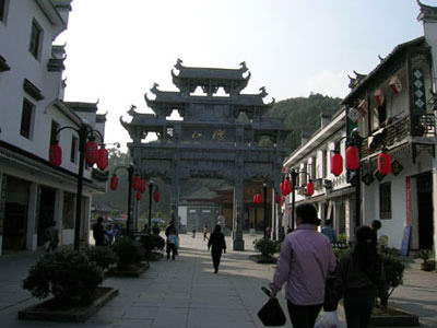 婺源江湾人引以为骄傲的是后龙山,他们把本族的人丁兴旺、英贤辈出归功于后龙山的龙脉好,这种风水观念自然不足为信。但婺源江湾人在此观念的作用下,创造了一个封山育林、保护生态的典范。自古以来,婺源江湾人不准任何人动后龙山上一草一木,古有“杀子封山”,今有“杀猪封山”。“杀子封山”,说的是十八世祖江绍武治理江湾铁面无私,他儿子违规到后龙山砍柴,被护林人捉住,为杀一儆百,他将儿子绑起游街示众,并将其处死。从此以后数百年间再没有人敢上后龙山砍柴。后龙山的植被由此保护得十分完好。如今走进后龙山,就如同走进了原始森林,满山古木,遮天蔽日,给依山而建的婺源江湾古村增添了不少神韵。 |