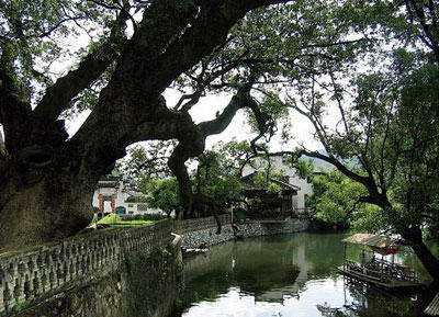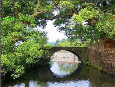 树德桥——据说南宋初年,高宗(赵构)被金兵追赶到严田,情急之中,他爬上这株枝叶繁茂的樟树,躲过了一劫,使宋朝历史又延续了150多年。看来,严田古樟的灵气,孕育了好德性。终于有一天,从南京差来一封600里加急官函,外加1包官银。李氏族长拆封一看,大意是令该村在大樟树旁建一座石拱桥,还特别注明桥名必名“树德”!村人想到:是坐上了金銮殿的高宗想起了这棵救命树啦。于是,大樟树下就有了一座环“绕秀”樟的石拱桥。如今,清澈见底的溪水仍潺潺而流,不舍昼夜。想来,当时的流水只映照过900年前的那场惊险,然而,一岁一枯荣的古树,岁岁繁茂的樟树却记下了岁月流转的年轮。