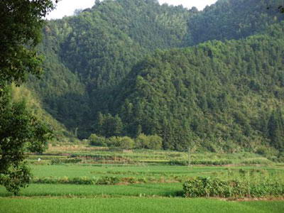 严田古樟民俗园在鸳鸯湖与彩虹桥之间,宽阔的柏油公路宛延伸展,沿途阡陌相联,绿山相接,鸡犬稻菜,村烟殷庶。车过甲路乡政府,转眼就到了,在那棵硕大难匹的樟树下,就是严田古樟民俗园。