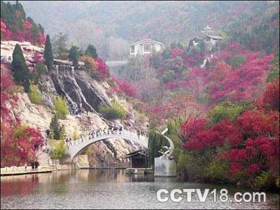 红叶谷景区位于济南市南部山区锦绣川水库南三公里处。景区内绿荫浓郁,群山苍翠,碧波荡漾,景色秀美。春来山花烂漫,夏至凉爽宜人,深秋红叶流丹,冬季红梅傲雪,特别是金秋十月,千余亩的野生黄栌红叶满山,形成了独具特色的自然景观,成为江北最大的红叶观赏区,红叶谷也因此而得名。成为江北最大的红叶观赏区。 |