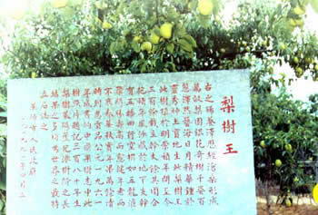 主干丈余,其团合抱,积年风沙,藏于地下,枝干有五蹯,曲行空,犹如五龙汇聚间;胜寿高而愈健,年老而不衰,春华秋实年果万余,清时列为贡品。公元一九六一年成书的中国果树志中此树照片题记“三百八十年生梨树莱阳芦尔港村”,树龄之长,结果之多,均为世界之最,特立后志之。 |