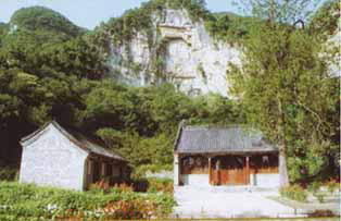 清代的著名文学家安致远,以他的亲身感受,这样描述仰天山:峰壑回合,菊黄丹枫,浓淡远近。村落皆沿革。上下蔓条蒙翳,人语自爨烟中,出数武不辨篱舍。这番记录,真比陶渊明笔下的桃花源,还要美一些。然而,在进入仰天山之前,游人还可以在路上就欣赏到一处景致。这就是北面石人山顶上的石林。石林由9座突立的巨石组成,极像9位欢聚一堂的老道人。而且,惟妙惟肖,形态各异,很有情趣。在安致远的眼中:这群道人有的拱着双手,有的弯着腰背,有的扭头回顾,有的端庄倚坐,有的闲坐小憩,似是一队秋山旅游的远道游客。安致远还说,越看越怀疑它们是真的。地理专家考证说,这是石灰岩地区,绝无仅有的地貌奇观。这九道人一景,可算是仰天风光的序幕。