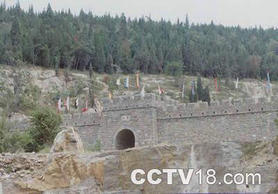“二关”为边关哨卡式建筑,寨墙合大门全石结构,因为受环境、条件限制,当年义军用干碴式堡垒。占地面积200多平方米,长40余米,高8米,该建筑卡谷而立森严壁垒,旗掩霸寨,当年由插翅虎雷横把手。