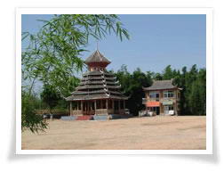 侗族鼓楼 国宝园 风景区交通条件便捷,地理位置优越。这里距长途汽车站8公里,距三、日东高速公路入口5公里,距日照海滨17公里,15路公交车终点站设在园区门口。 风景区内绿化面积在80%以上,自然生长着毛竹、斑竹、月竹、紫竹、钢竹、金镶玉竹、等竹子品种,同时辟有专门的竹子品种展示区域,既是一个天然氧吧,又是一个天然植物园。充分体现了具有江南风情的竹文化特色,园内建有竹楼、竹亭、竹廊及少数民族村寨等景区,开辟了配套的餐饮、住宿、旅游购物等服务设施,少数民族艺术团体常年为游客表演民族歌舞,特别设有游客参与性强的竹竿舞、竹林乐园等娱乐项目。