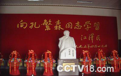孔繁森同志纪念馆坐落在聊城市碧波荡漾、风光秀丽的东昌湖畔,占地面积10350平方米,建筑面积1400平方米,馆高15米,为双重檐四周环廊式结构。纪念馆正门上镶嵌着江泽民总书记于1995年7月28日亲笔题写的“孔繁森同志纪念馆”八个鎏金大字。纪念馆内设1个纪念厅和3个展览厅。纪念厅内安放着孔繁森同志大型半身塑像,塑像后屏风上镌刻着江泽民总书记的题词“向孔繁森同志学习”。展厅内布置着孔繁森同志事迹展览,展览分为6个部分,展出图片270多张,陈列实物千余件,并配以3组电视录像片。