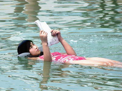 黄河谷马拉湾死海漂浮 死海漂浮蕴含饱和的死海矿物卤盐,可不是普通盐水哦,强大的浮力托你没商量,漂不漂由不得你,躺在水床上“漂漂欲仙”的感觉真够味!