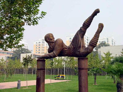 文博广场简介 郑州文博广场位于郑州市金水区,是一个开放型的公园广场,靠近河南省博物院。郑州文博广场面积为28000平方米,是周围居民晨练,休闲,散步的场所。文博广场拥有72盏大大小小景观灯,夜如白昼,喷泉一天十几个小时喷水供市民观赏。此外,文博广场上还有十八罗汉的雕塑。 在2007年6月5日,文博广场被市政府改建成郑州环保节能教育基地,开始在广场上推行使用环保节能设施。不只是灯泡不用电,还有立在水中的喷泉也无需电来驱动。在广场北部的一个造型别致的“太阳鸟”喷泉前,摆放着两块太阳能电池板,“太阳鸟”口中喷出的“泉水”就是借助了太阳光的力量,才得以源源不断。