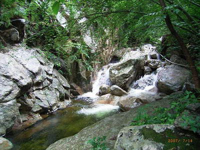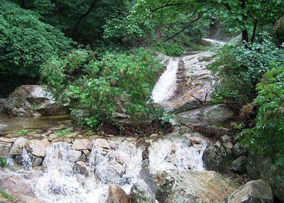 百米大瀑,如通天巨泉,日夜狂泻;涓涓溪流,似龙吟细细,四季低喧;金蟾宫内,深潭碧池,蛙鸣蝉噪,述说久远神话;红河寺下,古木苍苔,记叙故去的繁荣。天有常度,地有常形,岂止四渎之流,万泉之溪,莫不如此。源自古木寸草,汇于深潭碧池,依山趋势,奔走不息,从悬崖上跳跃,在岩石间磨练,竟也洗出一条光洁如镜的幽谷。