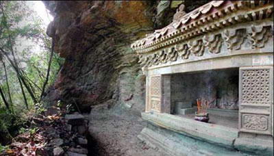 凌虚岩是武当山三十六岩中非常有名岩洞,这里清丽幽深,与世隔绝,是一个悟道修行的绝佳之处。宋元时期这里就有建筑,明永乐十年又敕建殿宇,以奉玄帝、文昌帝君、祖天师、孙思邈、陈抟等,并钦选道士焚修香火。 凌虚岩清丽幽深,与世隔绝,被隐士认为是悟道修行的绝佳之处。凌虚岩内有一座仿木石殿。石殿内原有元始天尊、玄武大帝,凌虚子、天官等九尊塑像,但现在只剩下三尊了。凌虚岩在道教历史上有着极高的声誉,那是因为我国著名道教学者、易学集大成者、诗人陈抟曾在这里修行并著书立说。陈抟青少年时代就熟读经史子集百家之书,有经世之才。他五十岁时,“尽弃家业,遣散家仆……入武当山,学神仙导养之术”。