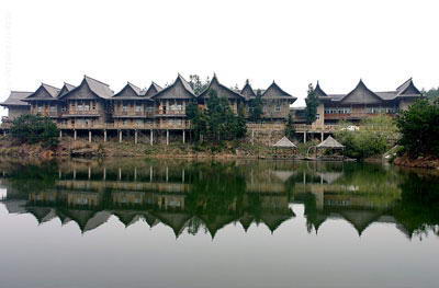 铸钱湖约7千平方米面积,6万立方米容量。湖水清澈,湖面如镜。水面上有亭榭、竹筏、扁舟、钓鱼台。湖畔有竹道长廊、登山石径、瓜棚过道、果蔬菜园、禽栏畜舍、竹庐别墅、停车广场、石桌石椅竹篱笆。