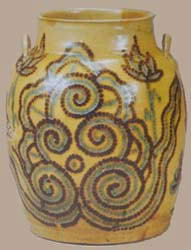 长沙窑的时代大致可上溯到初唐,中后渐盛行,晚唐鼎盛,衰落于五代末年。窑址包括铜官镇和石渚湖两个赛区,北端依山临江,南端沿江面湖,相距5公里。铜官镇窑区沿江千米,有残存窑场多处,出土以碗最多。石渚湖窑区面积100多万平方米,现存20多万平方米。窑址区有采掘陶土的洞坑,其中最大一处长85米,宽35米,深6.5米。有废弃窑包,现存13处。考古工作者在这里发掘取得唐元和三年(808)纪年铭文和不少釉下彩绘画、题字诗文的瓷器.1978年50多天的调查发掘中。获得遗物2223件,按器形分44类,款式规格在百种以上。釉下彩绘和釉下彩饰占很大比例,有413件。实用器物、窑具、工具以轮制为主。瓷器胎多灰白,胎表大多涂有白色衬釉,瓷化程度高.纹饰有人物、山水、云气、花. |