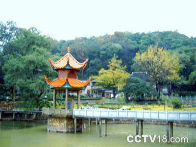 出亭上石拱桥,又有一坪,成三角形,坪边有银杏树两棵,树上挂满了白果。往右顺塘堤而行,不过五十步,就是山边石径,再前行数十步,有一小径上山,不出二十步有一长廊,廊中书法染壁。细数有李立、颜家龙等墨宝和“吾将上下而求索”等句。廊中有情侣嬉戏,也有童子读书。 廊下一潭形如腰子,约十米见方,水深数尺,溪水清澈,小鱼三四尾,有一柳伸枝入水,潭头一溪,溪水汩汩,溪中石头三四个,可以踏石玩水,也可以坐石洗足。溪上一拱桥,从桥洞望去,溪源在桥后的林丛深处。涉溪上岸,往前行三十步,就是一青石坪,坪长两棵银杏树,也就是亭中看到的那两棵。 |