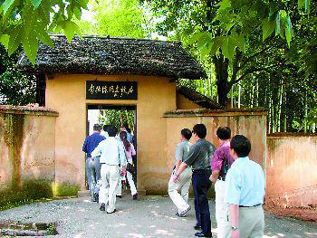 东横堂屋的墙壁上,悬挂着彭总弟弟彭金华、彭荣华,弟媳周淑身、龙国英等同志的遗照和简介。这四位同志都是抗日初期入党的。1937年8月,彭总写信动员彭金华赴延安抗大学习。彭金华在抗大入了党,第二年党组织派他回家乡开展地下革命斗争,他积极发展党的组织,建立了彭家围子党支部,并担任支部书记。同年,他的妻子周淑身、弟弟彭荣华、弟媳龙国英也相继入党。彭家围子成为地下党支部的主要议事地点。1940年10月4日凌晨,彭荣华不幸被国民党反动派枪杀于故居厨房后门口;彭金华被抓走,七天后被秘密杀害于易家湾。两位烈士的遗体合葬在屋后面的山丘上。王震同志为二位烈士题写了墓碑。 在彭总故居西头的三间横屋里,是彭总光辉一生的辅助陈列室。这里陈列着60多张图片和50多件文物,其中有彭总在庐山会议期间呈送的“万言书”复制件。这些照片和文物向人们讲述着彭总光辉壮烈的一生。 彭总诞生于1898年10月24日,取名得华。在童年和青少年时期,他饱尝了人世间的艰难困苦。6岁开始读书,8岁因母亲周氏病亡,父亲彭民言积劳成疾,家贫如洗,不能继续上学,就在家砍柴。10岁至12岁替富农家放牛,13岁至14岁去煤窑做童工。15岁时,参加饥民闹粜斗争,因团防局捉拿,他跑到洞庭湖滨做了两年堤工。1916年入湘军当兵后,他交了一些知识分子和穷人出身的士兵做朋友,秘密组织了救贫会,积极开展救国爱民活动。贫苦的出身,黑暗社会的摧残,使他锻炼出反对压迫和剥削的刚毅性格,并逐渐树立了为穷人翻身求解放的思想。 1922年8月,彭总由得华改名德怀,考入湖南陆军军官讲武堂。次年8月毕业后回湘军,历任连、营、团长。1928年春,在严重的白色恐怖下,彭总毅然加入了中国共产党。同年7月22日,领导了著名的平江起义。从此,彭总在党中央和毛泽东同志领导下,从土地革命战争、抗日战争、解放战争、抗美援朝到社会主义革命和社会主义建设各个时期,戎马倥偬,艰苦奋斗,建立了不可磨灭的功勋。 五十年代后期,以高指标、瞎指挥、浮夸风和“共产风”为主要标志的左倾错误严重地泛滥开来,国家和人民遭到重大损失。彭总看在眼里,急在心中。1958年12月,彭总由湖南省委第一书记周小舟陪同,回到阔别33年的故乡视察。当听到吴公塘生产队一季稻亩产超千斤的汇报后,他当晚就打着手电亲自到田里,扯出禾蔸数了根数,然后说:“我最近看了很多地方,有的讲亩产几千斤,上万斤,吹得很历害,我就不信那一套。我这个人,拿共产党员十条标准来衡量做得很不够,但有一条我是做到了,就是敢讲真话,实事求是。”第二天,他视察了学校、幼儿园、敬老院、炼铁厂,拉着大队支书的手深情地说:“我们当干部的一定要好好发扬党的实事求是、联系群众的优良作风啊!” 彭总回北京后,经常念叨平江一位残废红军战士写给他的一首诗:“谷撒地,薯叶枯,青壮炼铁去,收禾童与姑。来年日子怎么过?请为人民鼓咙胡。”1959年7月,党中央在庐山召开会议,彭总根据一年多来在全国各地视察特别是在家乡了解到的一些真实情况,向党中央、毛主席写了一封长信,陈述了自己的意见。但不幸的是,由于这封信,使他受到了错误的批判和处理。 1961年11月,彭总经党中央和毛主席同意,又一次回到故乡,进行了长时间的调查研究,并且多次参加生产劳动,同社员们一道把黄泥大坪开成了旱涝保收的稻田,给家乡人民留下了更深刻的印象。他是那样深沉炽热地爱护人民,人民也对他无限敬仰。 在文化大革命中,彭总受到林彪、“四人帮”一伙的残酷迫害,不幸于1974年11月29日含冤去世。 彭总平反昭雪以后,人民更加深切地怀念他,有一位老人写了这样一首诗,吐露了广大人民的共同心声: “起义湖南更远征,千秋伟绩有公评。 横刀北国风雷动,跃马东邻虎豹惊。 手上万言缘赤胆,身拼九死为苍生。 怒潮日夜闻江海,想见将军叱咤声。” |