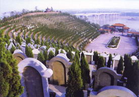 湘潭陵园位于湘潭市建设北路西侧,与湘潭公园相对,烈士陵园是湘潭市褒扬革命先烈的重要场所和爱国主义教育的重要基地,是省市革命烈士纪念建筑物重点保护单位。 1954年修建,名为烈士陵园。1981年改称湘潭陵园。陵园安葬为革命牺牲的烈士和对革命有贡献的老红军老干部。其中有中国人民解放军解放邵阳时阵亡的指战员90余人,有清匪反霸和社会主义建设时期献身的干部和战士,还有大革命时期牺牲的张碧云等烈士。 陵园占地2公顷,正中建有革命烈士纪念塔一座,塔后有殡仪馆、吊唁厅、陈列室、灵位室。园内遍植苍松翠柏,桔林花果点缀其中,环境幽静雅洁。