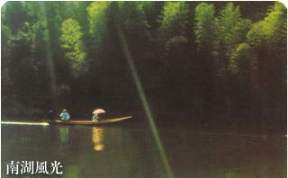 南湖风光秀丽,湖汊与峰峦相交错,水色山光,相映成趣。南岸一脉赶山,绵延起伏,恰似青龙跃水;湖中九个小岛,一字行排列,俗称九龟山,形成"一龙赶九龟"的奇异景观。民间传说秦始皇赶山填海,至此天明,任这位暴君怎样鞭打,那山仍岿然不动。于是这座山就留在南湖之滨。山尾麓留有一道深坳,人称马坳,传说是当年秦始皇留下的鞭痕。湖西有铁路大桥与洞庭湖相隔,京广铁路跨湖而过。湖东面北港湾口有一座三拱大石桥飞架湖面,长桥卧波,饶有风致,这就是熟为人知的三眼桥。它是明代户部尚书方钝所修。桥对面有螺蛳山,山上有方钝陵墓,山下四面环水,鱼帆往来;湖中有湖心岛,像是镶嵌在碧波中的宝珠;远处街巷纵横,楼阁参差。古人将它形容为:“日受千人拱手,夜观万盏明灯。”湖北岸半岛鳌突,港湾回环,绿水青山,真个是"千峰出浪险,万木抱烟深"。还有那金鄂山雄峙湖滨,与赴山遥遥相对。 南湖自古是文人集聚和吟诗作画的场所。唐中书令张说贬官岳州后,经常与诗友泛舟南湖,把酒唱和,为一时之盛。著名诗人李白、赵冬曦、尹懋等都曾是南湖的常客,留下了许多名篇佳作。张说的"云间东岭千重出,树里南湖一片明"(《吟南湖》),李白的"水闲明镜转,云绕画屏移",都是千古绝唱。 南湖是聚宝盆。湖中养鱼,年产在100万斤以上。湖畔产茶,人称白鹤井旁产白鹤茶,"味极甘香,非他处草茶可比。"今天南湖生产的白毛尖茶仍属名茶。 南湖终年碧波荡漾.幽静雅洁。山山水水,胜境天成。1982年列为湖南省自然风景保护区。 |