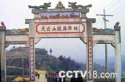 大云山青峰叠翠.绿水环流,一派葱笼清幽景象。林涛、飞瀑、流泉、怪石、奇峰、云海、题 刻、碑林、庙宇、古殿点缀得多姿多彩。交相辉 映,蔚为壮观。1997年4月被评为岳阳十景之一。 |