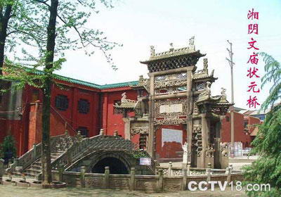 文庙始建于宋庆历八年(1048年),位于县城东湖西岸,屡遭兵火,多次修葺,于清光绪十一年建成。大成殿是文庙中的主体建筑,为须弥座式台基,櫪麻石铺砌,坐北向南,东西长21.5米,南北深17米,高櫩1.5米,共占地410平方米。台基四周环以石栏杆,栏板上雕有各种花纹图案。泮池、状元桥和棂星门牌坊系文庙的附属建筑。原有19项建筑,总面积1.25万平方米,“规模甲通省”。现存大成殿及状元桥、泮池、石牌坊等建筑。1984年,县政府落架重修。现殿宇金碧辉煌,面目一新。康濯为此撰有《重修文庙记》。文庙前有“状元桥”,横跨“泮池”。按科举时代规矩,高中状元者可打马过桥。状元桥两侧,有牌坊二,南面为“金声坊”,北面为“太和元气”牌坊。全用花岗石块,镂空雕刻,石榫结构,其造型奇特,制作精良,令人叹为观止。石坊巍然对峙,历七百余年纹丝未动。
