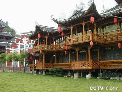 冲天楼:楼高48米,九重十二层,依山而建,全楼没有一颗铁钉,是一座纯木结构的土家建筑艺术精品。 |