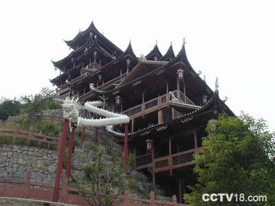 冲天楼:楼高48米,九重十二层,依山而建,全楼没有一颗铁钉,是一座纯木结构的土家建筑艺术精品。 |
