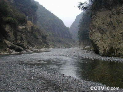 仙人溪口,筑有大坝,水库很长很深,可划船。沿水库渠道进到黑湾渡漕处,在一个名叫空壳的石洞上右看到一尊自生的仙人菩萨,类似观音一般。只见她披红戴绿,煞是有神。旧社会,有很多乡民到此烧香,顶礼膜拜。 站在空壳岩边往南远眺,只见雄壁岩上灰朦朦一片,如烟雨一般,这便是有名的“仙人烟雨!”你看:雨丝并不大,根根细如麻,断断续续随风洒,白云生处冒烟霞,啊!好一幅江山多娇的水墨画! |